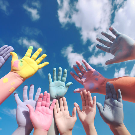 Hands Painted in Vibrant Colors Depicting World Unity and Global Harmony