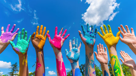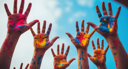 Colorful Painted Hands on Artistic Background Reflecting Creativity and Diversity.