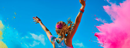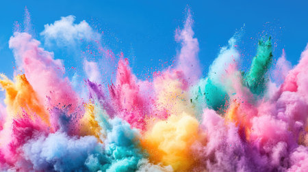 This captivating image showcases a vibrant explosion of colorful powder and confetti, creating a dynamic and joyful atmosphere perfect for festive events.