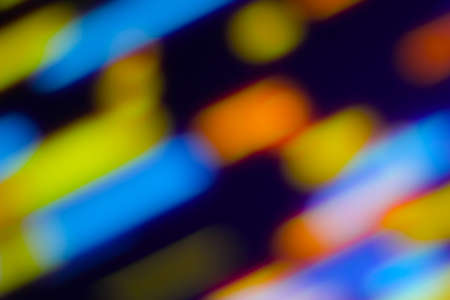 Chistmas background with coloutful bokeh in light and dark blue, yellow, orange, green, purple. Defocused