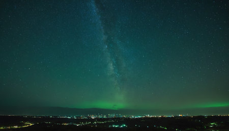 Milky Way over Kuala Lumpur city at night with starry sky