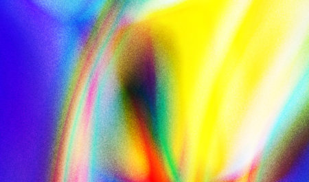 Abstract holographic background. Blurred rainbow. Defocused leak multicolor green yellow rays flickers gradient beam lens flare on art black dark.