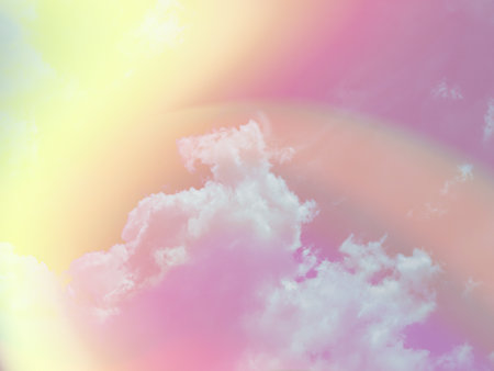 beauty sweet pastel yellow and pink colorful with fluffy clouds on sky. multi color rainbow image. abstract fantasy growing light