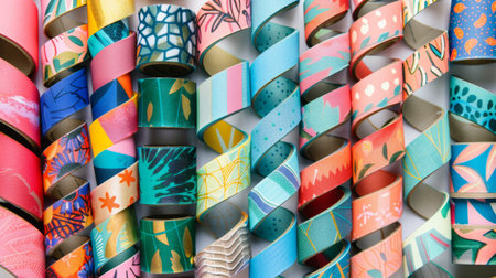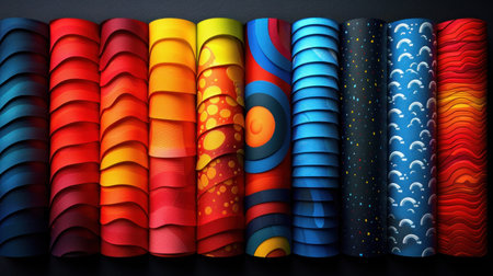 Colorful rolls with abstract patterns.