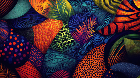 A background funky patterns, combining various shapes and colors. Generative AI
