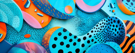 Abstract illustration showcases a dynamic array of colorful shapes and patterns, including circles and waves, creating an energetic atmosphere with ample copy space, AI generated