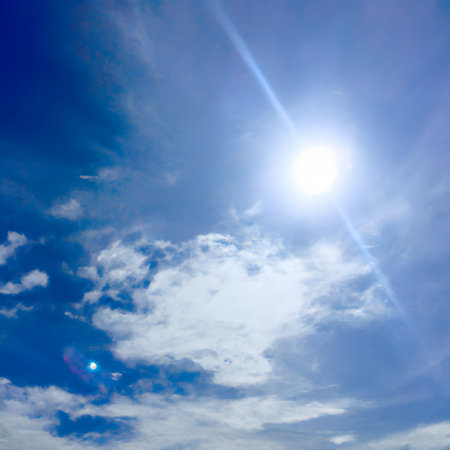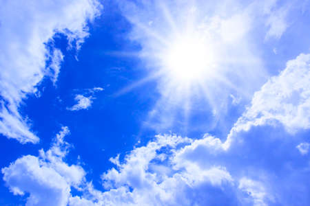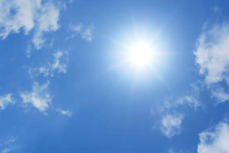 Blue sky with white clouds and bright sun