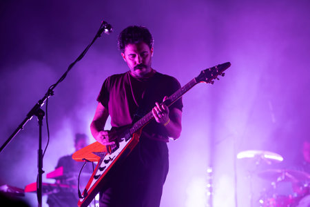 FARO, PORTUGAL: 5th SEPTEMBER, 2024 - Music artist, Tiago Bettencourt, performs on Festival F, a big festival on the city of Faro, Portugal.