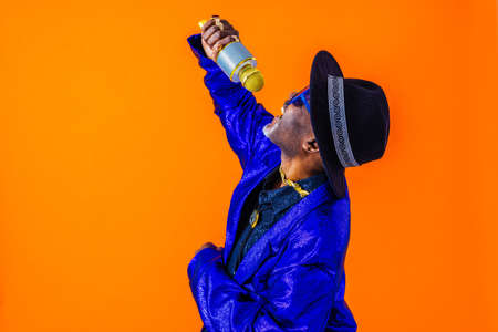 Cool senior man with fashionable clothing style portrait on colored background - Funny old male pensioner with eccentric style having fun