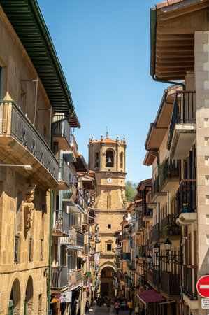 Lekeitio town street view. Basque autonomous community, Spain.