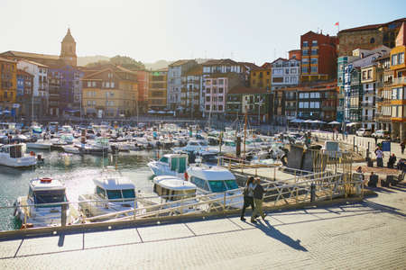 BERMEO, SPAIN - NOVEMBER 1, 2021: Harbor with fishing boats in Bermeo, Basque Country, Spain