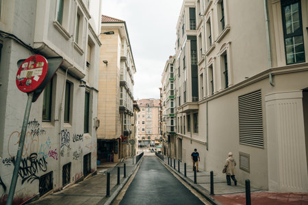 San Sebastian, Gipuzkoa / Spain »; April 30, 2020: Social distance through the streets of the city