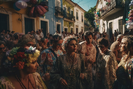 Immerse yourself in the vibrant atmosphere of a traditional cultural parade showcasing intricate costumes and unique footwear. This celebration highlights rich heritage and artistry through detailed patterns and vibrant colors.