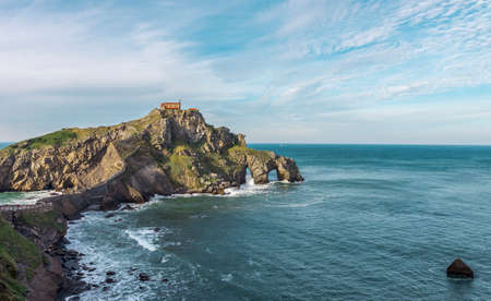 Bermeo, Spain - Octobre 24, 2018. The island of Gaztelugache photographed from the mainland during sunset.