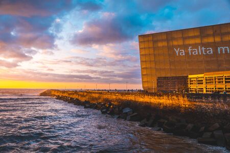 Sunset at the mouth of the Urumea river in the city of San Sebastián, Gipuzkoa. Basque Country