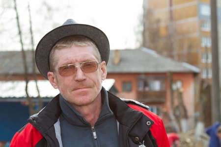 A man in a hat and glasses. Portrait of a man in a hat.