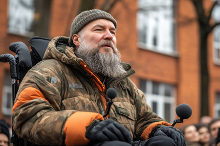 A wheelchair user captivated a crowd in a bustling urban square with a passionate speech Their words resonated with power, calling for equal rights and a community that embraces people with disabilities The speech served as a powerful reminder of the importance of inclusion and accessibility for all AI Generative