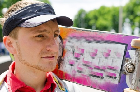 MINSK, BELARUS.August 19, 2017. A man with a microphone on the street