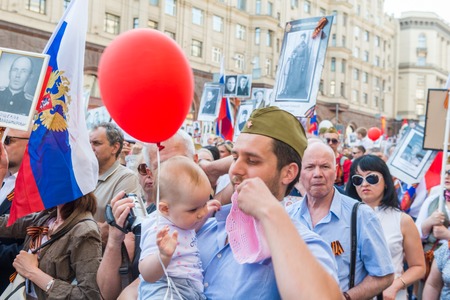 Moscow, Russia - May 9: Immortal Regiment marches on. Moscow celebrates 71-th Victory Day anniversary on May 9, 2016 in Moscow.