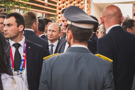 MILAN, ITALY - JUNE 10: Russian President Vladimir Putin visits Expo, universal exposition on the theme of food on JUNE 10, 2015 in Milan.