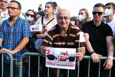 Minks / Belarus - 30 July 2020: crowd of people in the park during the presidential election campaign 2020 in Belarus. Elections in Belarus 2020