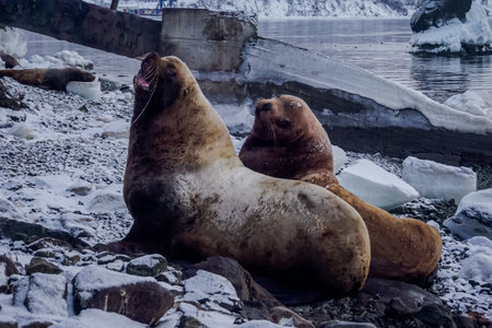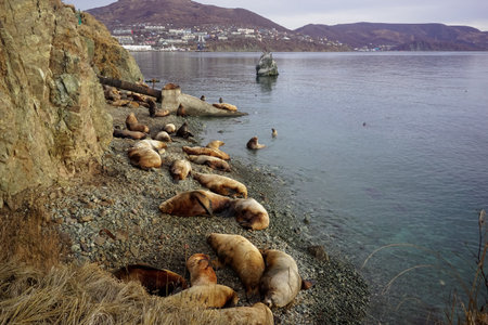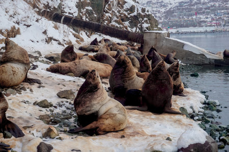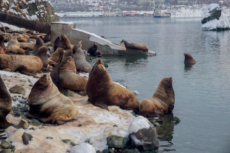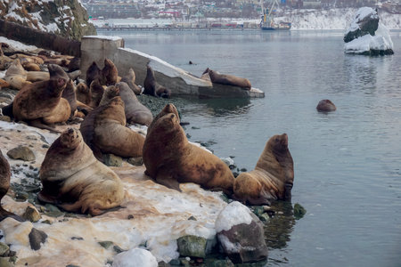 Wild Sea Lions of Petropavlovsk Kamchatsky Coast in Kamchatka