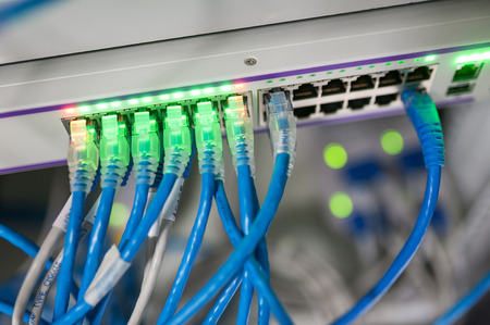 Ethernet network switch and network wire in rack cabinet