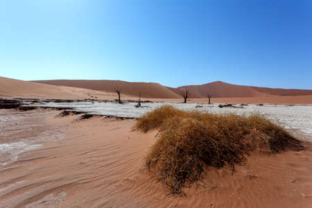 Dead Vlei landscape with dry acacia in Namib desert, valley Sossusvlei, Namibia Africa wilderness