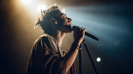 Singer singing with microphone