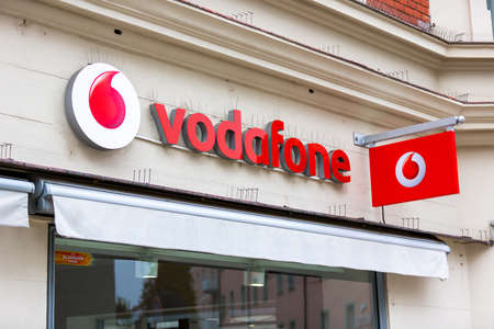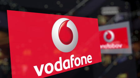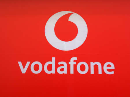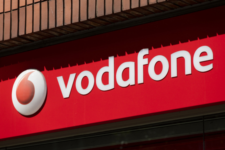 PRAGUE, CZECH REPUBLIC - NOVEMBER 7: Vodafone telecommunications company logo on Czech headquarters on November 7, 2016 in Prague, Czech republic. Vodafone India will launch 4G services across eight additional circles and 2,400 towns by March 2017.