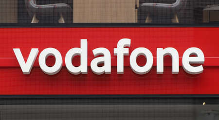 London, United Kingdom - January 31, 2018: Vodafone on a wall. Vodafone is a British multinational telecommunications company with its headquarters in London, United Kingdom