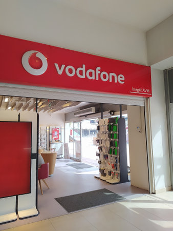 Bursa, Turkey - September 16, 2022: Vodafone store at Inegol AVM Shopping Center. Vodafone Group is a British multinational telecommunications company