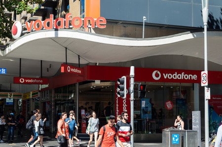 SYDNEY, AUSTRALIA - FEBRUARY 12, 2015: Detail of the Vodafone store in Sydney, Australia. It is a British multinational telecommunications company and one of the worlds largest mobile telecommunications companies.