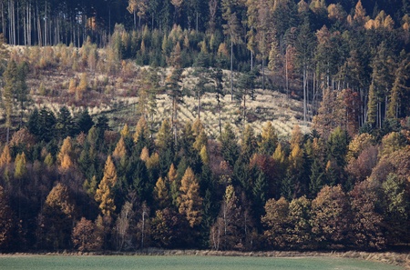 Colorful trees of autumnal forest. Natural outdoor photography.