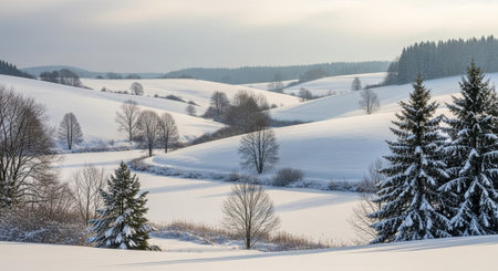 Snow covered trees and winter scenery in the Thuringian Forest in Germany