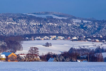 the town Grossschoenau in winter with many snow, Saxony in Germany