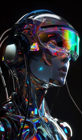 3d rendering of a female robot with futuristic glasses and glowing lights