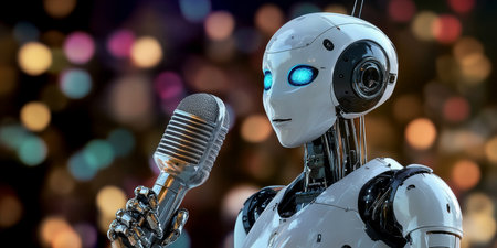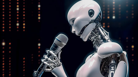 a singing robot in a concert hall, made with Generative AI