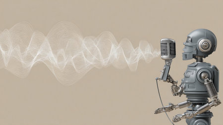 3D rendering of a robot with a microphone on a gray background