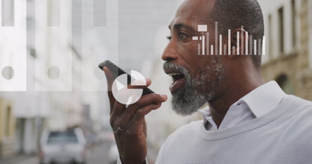 Closeup of happy black man recording voice mail on smartphone