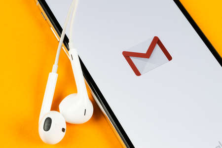 Sankt-Petersburg, Russia, June 2, 2018: Google Gmail application icon on Apple iPhone X smartphone screen close-up. Gmail app icon. Gmail is popular Internet online e-mail. Social media icon