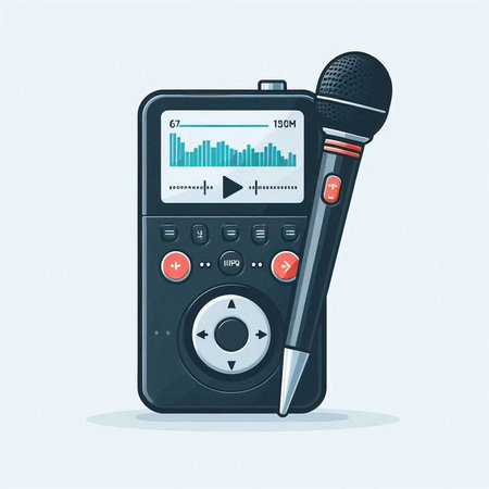 Tascam DR-22WL Digital Audio recorder. Portable field recorder on white desk with wind shield, deadcat.