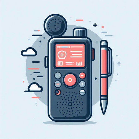 Vector illustration of portable radio with pen and pencil. Flat line style design.