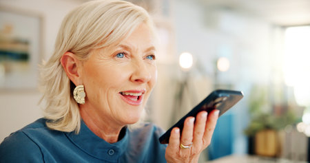 Mature woman using voice assistant on her smartphone