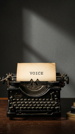 A sleek podium with microphones stands under a spotlight, blurring the audience behind it and adding gravity to the moment.