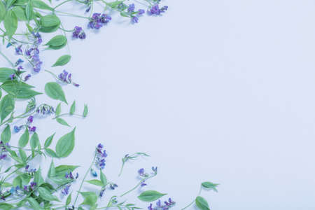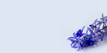 Spring floral pattern with fresh blue hepatica flower in the white envelope on light background