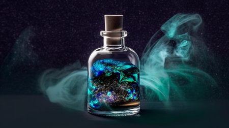 microplastic particles suspended in a clear bottle of water, created with generative ai