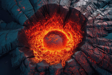 aerial view of a lava lake inside a caldera, created with generative ai