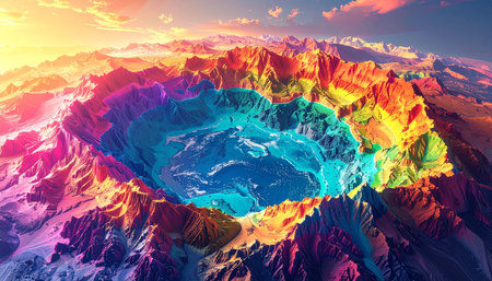 3d render of abstract landscape with colorful mountains. Elements of this image furnished by NASA