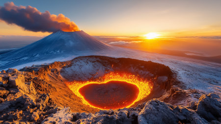 Dramatic fiery volcanic eruption at sunset